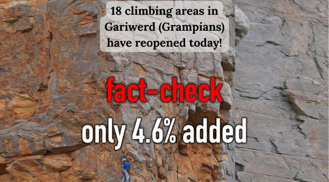 - The big announcement? It’s actually only 4.6% of Grampians routes being “reopened” to climbers.