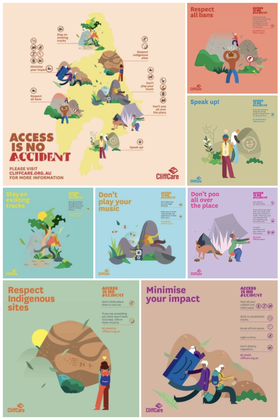 CliffCare today previewed some awesome new educational posters they plan to have printed at gyms, shops and climbing campsites that are designed to educate new (and old) climbers about minimal impact climbing. This has been a long time coming but they look great. Well done to all involved…