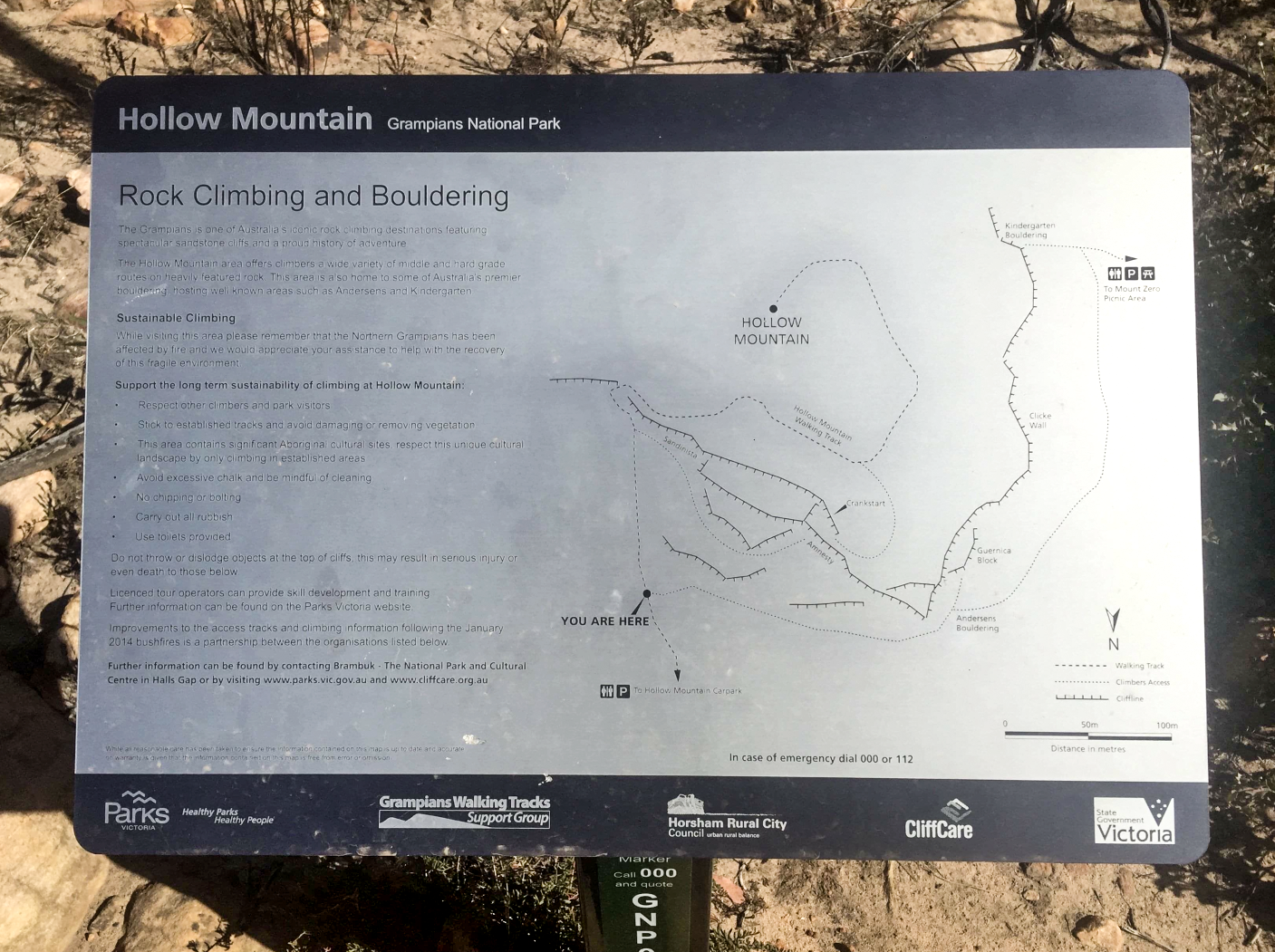 Even crazier, PV themselves installed signage to the Andersens boulder field after the 2016 bushfires directing recreational climbers off the main tourist track to the climbing. PV weren’t putting their head in the sand regarding climbers and pretending they didn’t exist – they were sticking their neck right out and helping promote it! Odder still these signs remain in place.