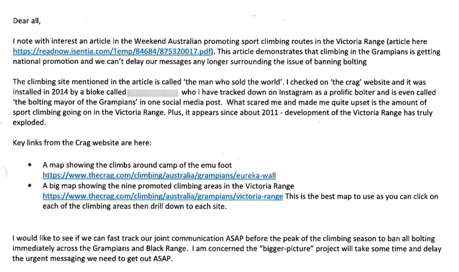What you are about to read is a tale of deception and bluster. An email trail between land managers secretly planning the removal of rock-climbers from most of the Grampians crags, whilst the very same climbers appear oblivious to what is coming. Wool pulled over their eyes they profess the desire for consultation whilst the plans for their execution have already been drawn up.