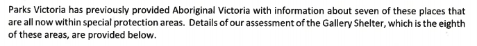 Now we come to an odd inclusion into this series of documents. For some reason we get one email between PV and Aboriginal Victoria regarding The Gallery climbing area. This is a literal treasure trove of information about the secret assessments. It’s particularly odd as it was sent more than a week after the bans were announced – and also contains clear photos of Aboriginal heritage items (quarried rock). Why is this information ok for public knowledge and everything else not ok? Where is the equivalent for Millennium Caves for example?