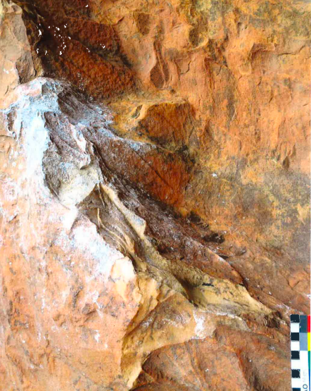 The report finishes with several photos showing chalk and bolts in the Gallery cave, and a single photo showing chalk on a section of broken rock – which is the alleged Aboriginal quarry. What is intriguing is that there are many similar quarries around Hollow Mtn area – including a much larger one that tourists literally walk over via a PV built walking track just before Sandinista Wall. Double standards? You bet.