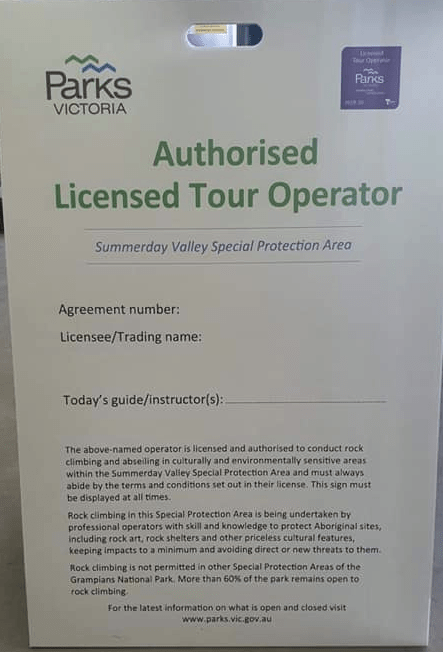 These signs are in full public display (they are almost a metre high and positioned at the base of cliffs). The wording is very interesting and continues the vilification of “average” climbers by implying they do not have the “skill and knowledge to protect Aboriginal sites”. But the most extraordinary (and paradox bending) thing is that these Licensed Tour Operators actually have not had any additional training to give them these skills! This sign is a total lie. The proposed training for these operators is scheduled to begin at the end of October, more than 3 months after these new rules were apparently being applied. We still have no information about who is doing this training either. PV continues to play catch-up on decisions made in haste. Why roll out these signs when the information is not even correct? This reeks of a public relations campaign to be “seen” to be doing something rather than a genuine attempt at protection. To many climbers it feels like a public shaming exercise.