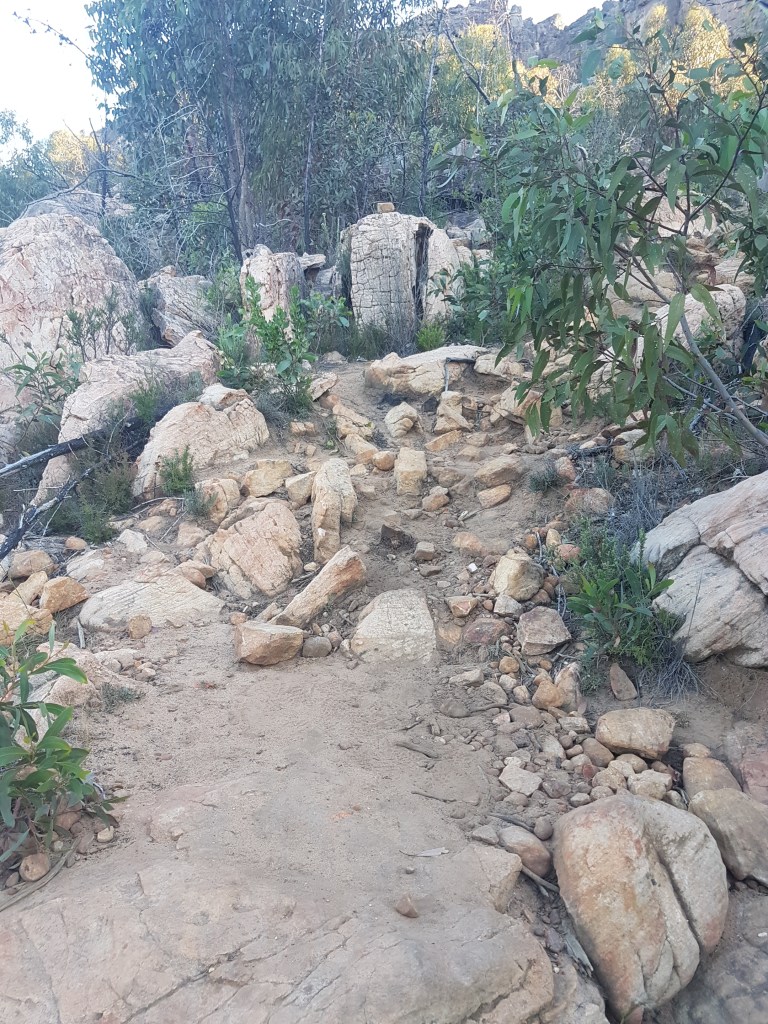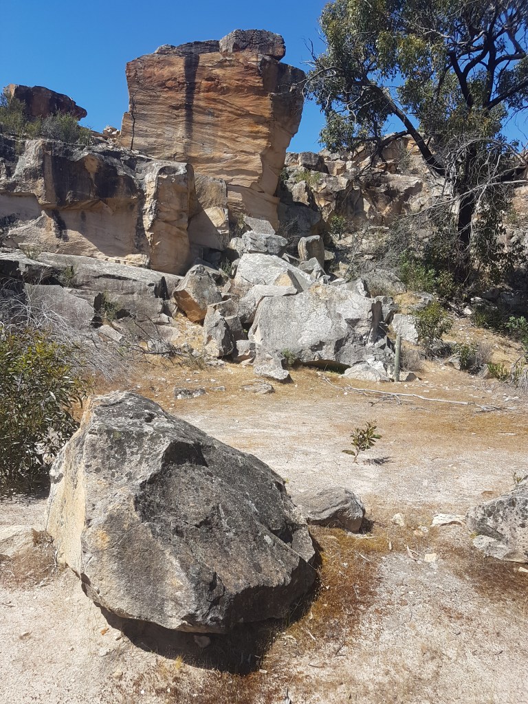 We have so many good memories spent on these cliffs with family and friends over the last few decades. Now the climbers are gone it has an almost eery museum like quality to the place. There are the remains of climbing still present, bolts and chalk stained rock, but not the people out enjoying themselves. It was hard to resist stepping off the ground and onto the rock. Where bushwalking ends and bouldering begins is an odd line to define in a place covered in rock like the Grampians.