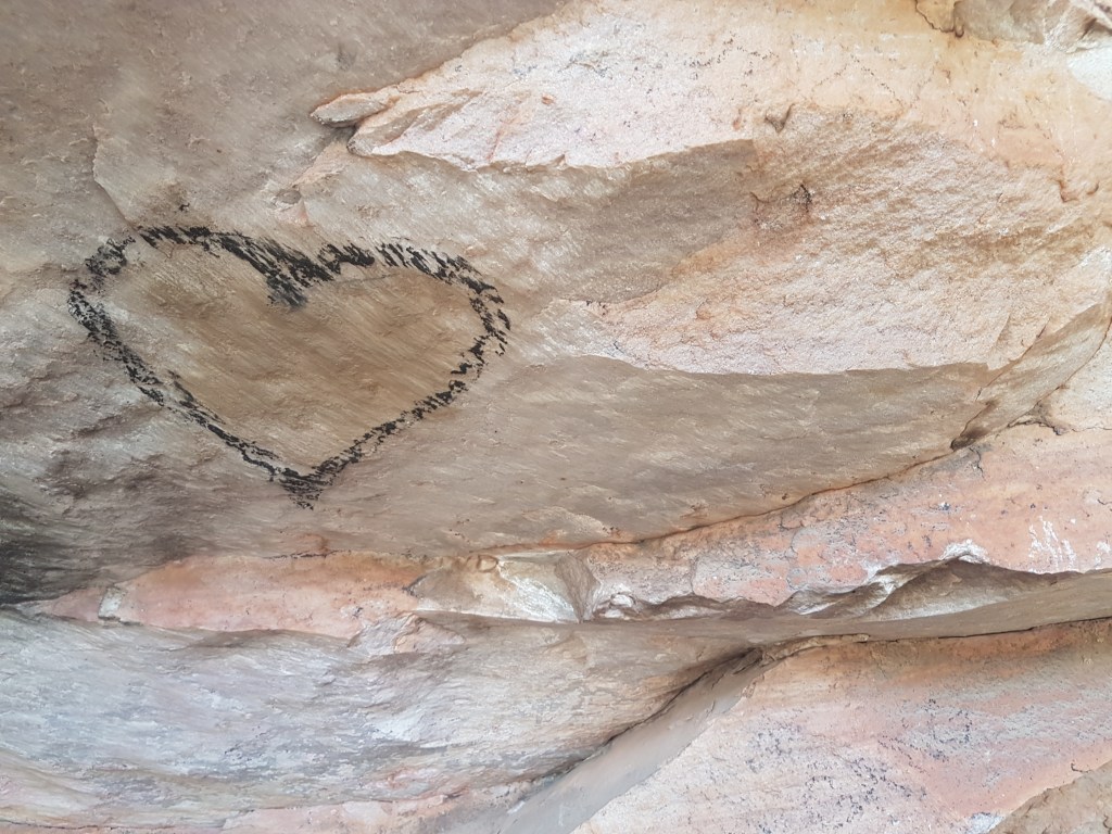 We went for a bit of a walk away from the caged area and found plenty of other stone tool edges, but also tourist graffiti like this heart.