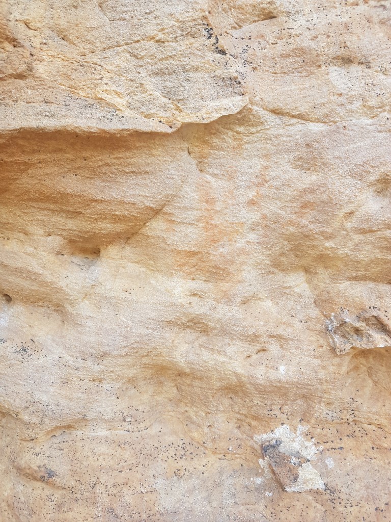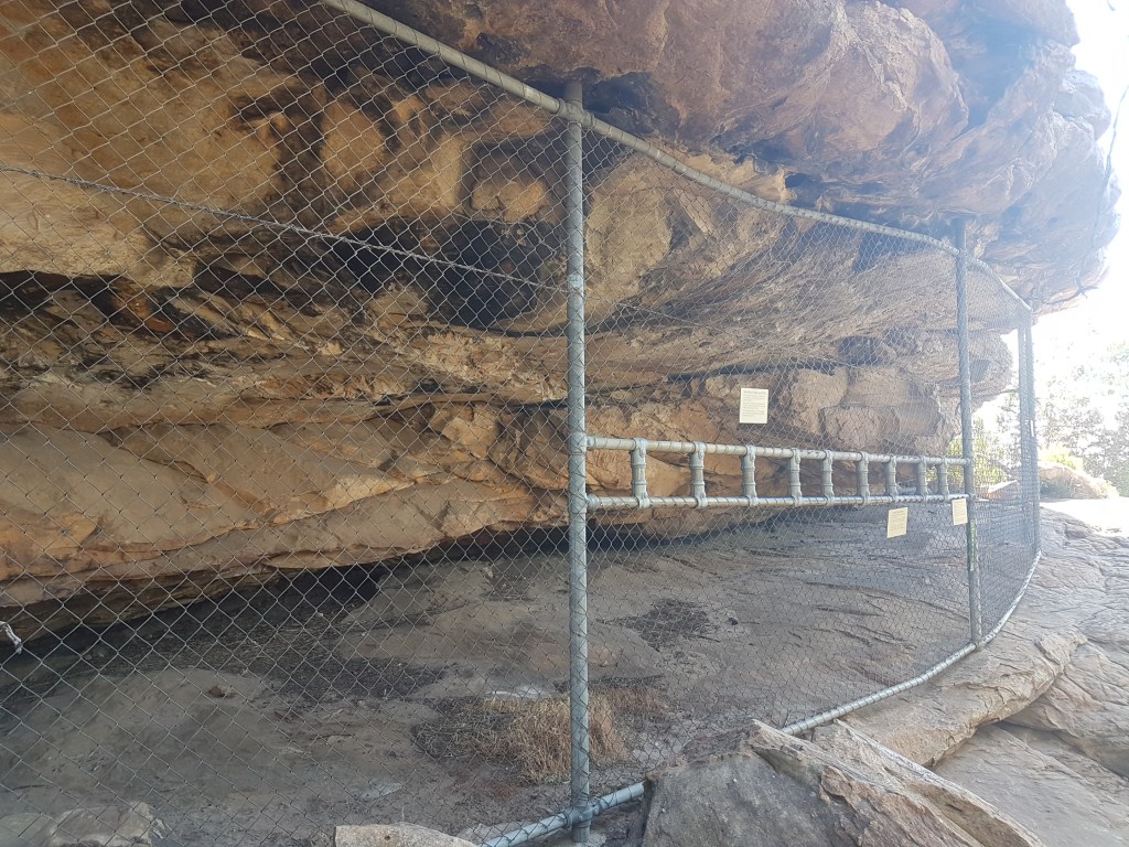 As we continued on the tourist track to the art-site it was clear any interpretative signage had been nuked in the 2014 fires but had not been replaced. This is a shameful state of affairs. We desperately wanted to learn more about the art-site and Aboriginal heritage but the signs were completely faded and unreadable. In the era of millions being spent on a Grampians Peaks Trail couldn’t they spare a few thousand to re-print these signs? Luckily we had purchased an excellent book “The People of Gariwerd” in advance which gave us some good background info and is highly recommended for anyone interested in Grampians history.