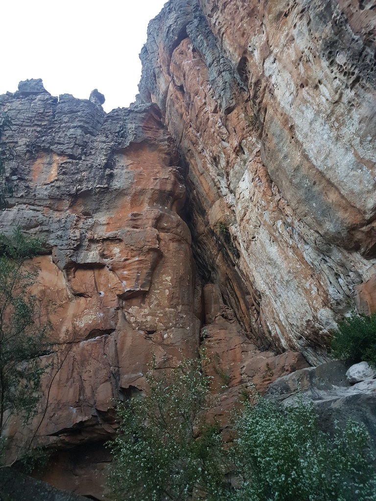 With time to kill we explored the complex area of SDV in detail as legislated* bushwalkers (*joke). We started with a walk around what is called Main Wall, which is confusing as it’s actually now on the backside of how you approach it – it was originally accessed by the quarry campground mentioned earlier. Climbing was actually shut on this wall way back in 2011 after large floods damaged the creek and allegedly exposed some cultural heritage items. This has never been confirmed by PV. For several years a flimsy laminated sign asked climbers to stay off the Main Wall routes but this sign disappeared a couple of years ago and has never been replaced. Many climbers presumed it had reopened when this sign went missing – and this led to much confusion. This was all prior to this years SPA ban announcements.