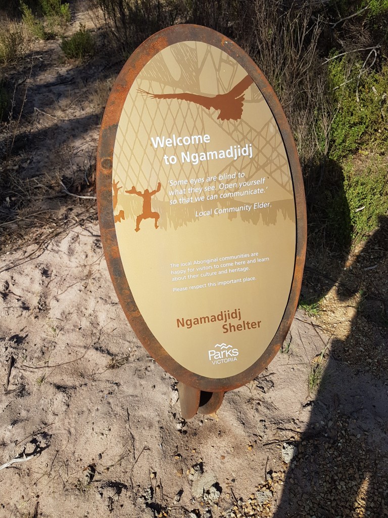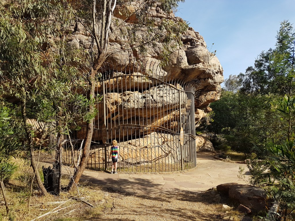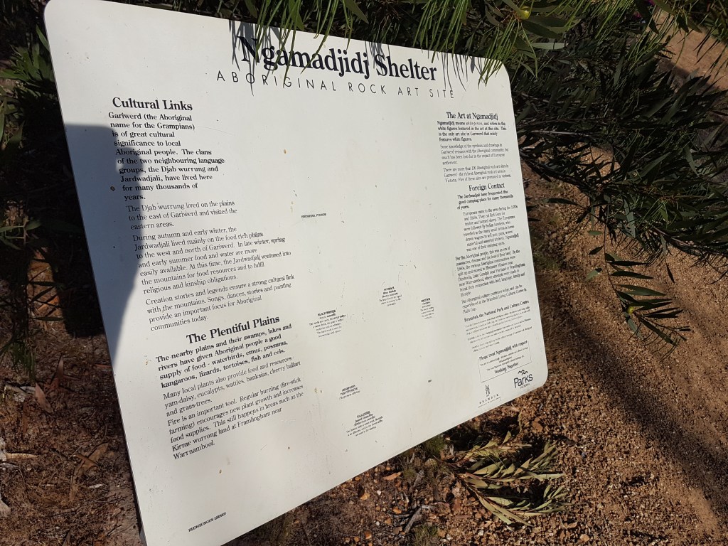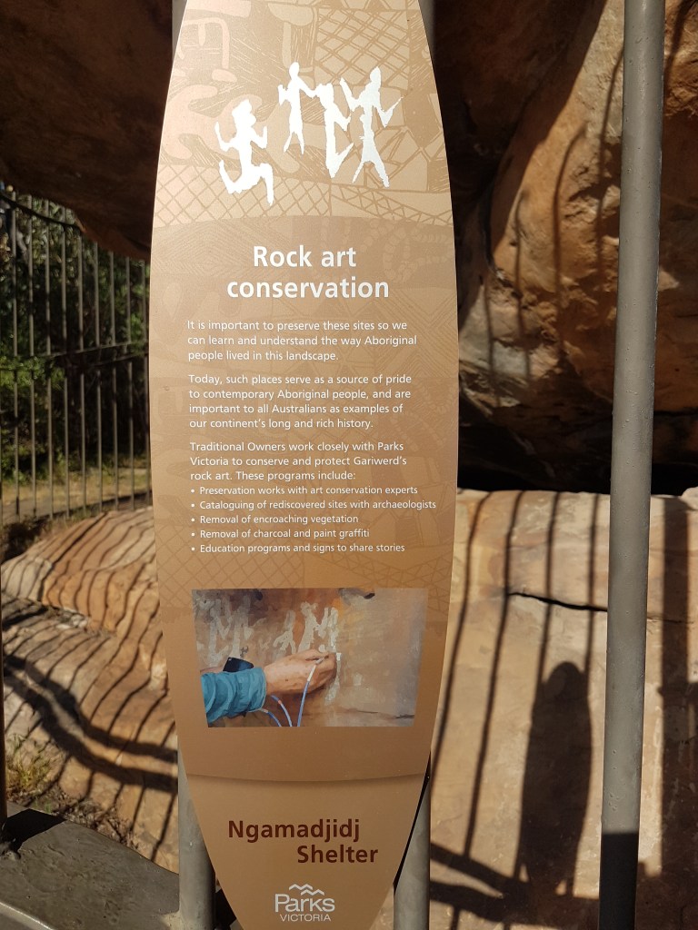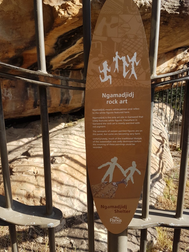 In the dying light of a long day we popped over for a look at the other caged Aboriginal art site in the Northern Grampians. This one has had a lot of recent love from PV – new signs and a new cage with a more artistic design. This is a short walk from Stapylton Campground and well worth a look. According to maps on PV’s website there is a small SPA surrounding the cave itself so please avoid bouldering around it. There is no signage on site about the borders of the SPA or anything about rock climbing bans. Even at the campground there was nothing signposted. We saw no climbers camped at this area – and only one tourist.