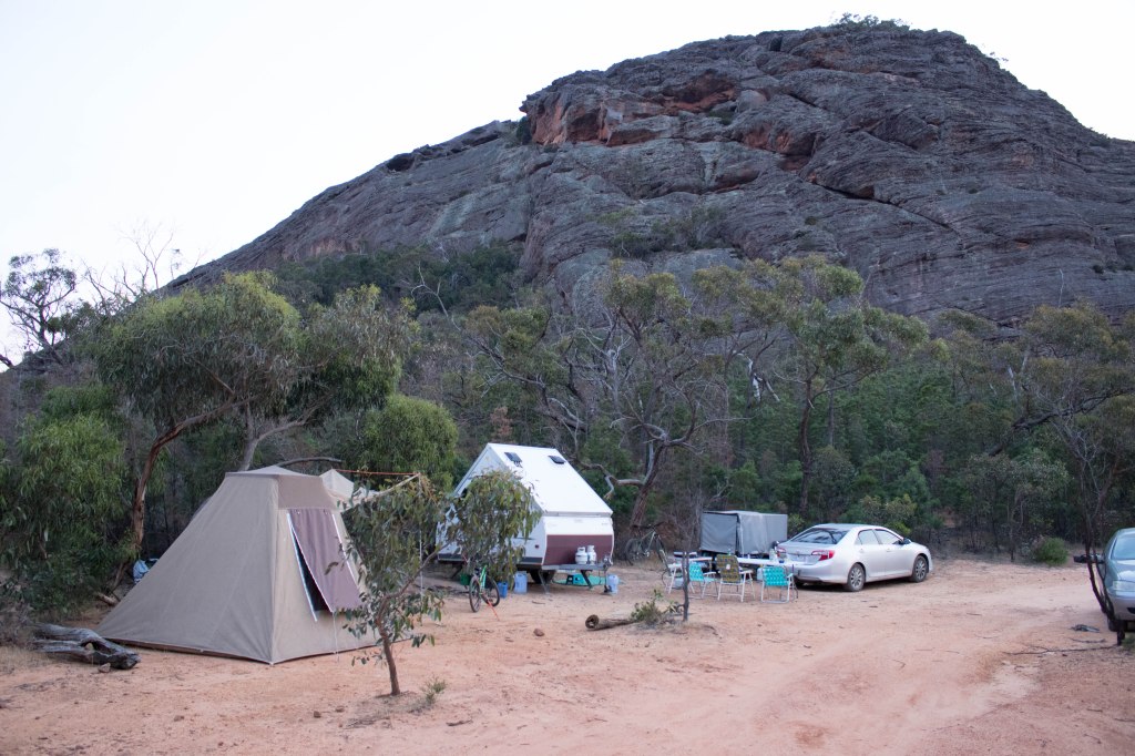 We received reports from climbers earlier this year that rangers had told some campers that Camp Sandy was “decommissioned” – and they suggested bush camping at an area 1.7km away between Camp Sandy and Stapylton Campground dubbed “New Camp Sandy” (see map). Considering Camp Sandy was never an official “commissioned” camp site this is an odd thing to say. We have sought clarity on the legal status of Camp Sandy from PV several months ago but have not received a response. There is no signage saying camping is prohibited. There were about 8 other people staying at the campsite whilst we were there, with 4 of them being non-climbers. We also checked out New Camp Sandy but there was no one camped there. It does look like a nice spot with more shady tree cover and spaces for lots of tents. If you do camp there please avoid campfires – it is a pet hate of Parks Victoria and they will fine you for it.
