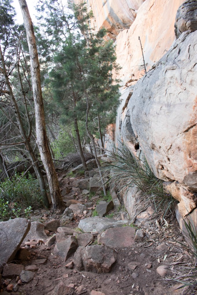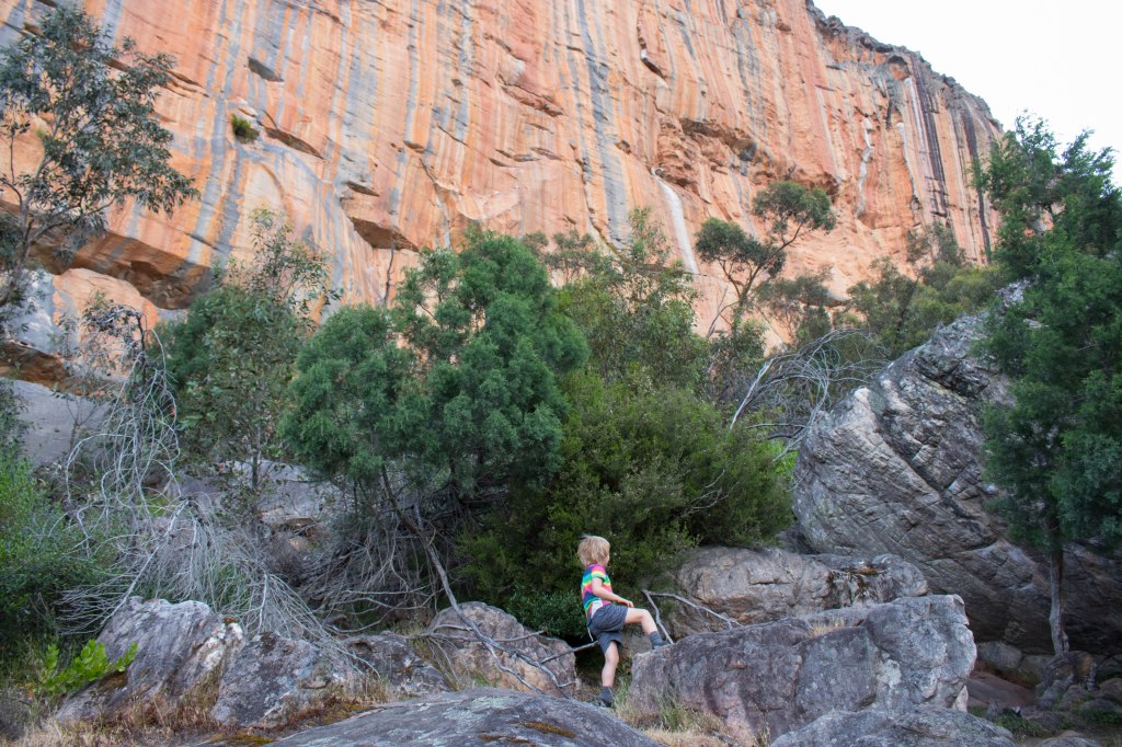 We began our day with a walk from Camp Sandy up to Trackside where we planned on doing a spot of bouldering. This is about a 1km walk, half of it on an “unofficial” climbers track that leaves the backside of Camp Sandy and joins up with a PV built track that comes from Stapylton Campground.