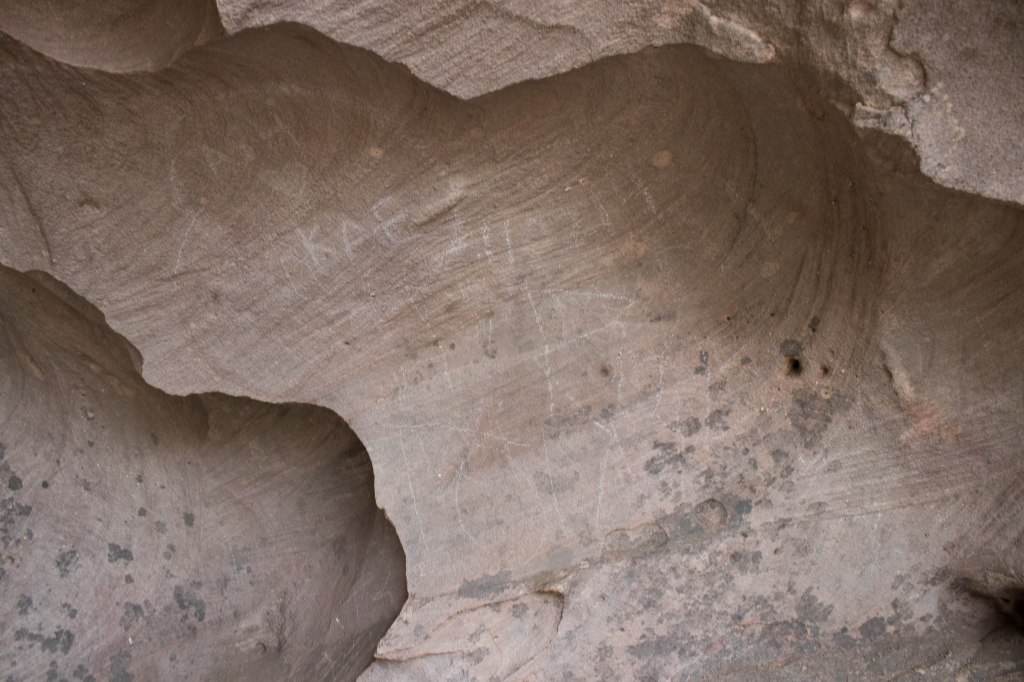 Compared to Hollow Mountain, the caves around Stapylton remain largely graffiti free. We know Hollow Mtn receives regular bus loads of tourists (trampling straight through an SPA) – and it seems evident that they must be causing the graffiti. Stapylton is more accessed by lone walkers and climbers and sees much less traffic. We saw little deliberate vandalism across the entire walking trail.