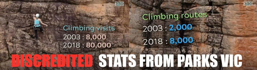 From what we have seen in the Grampians in recent months there is certainly no increase in climbers. We have seen a marked decrease because of the uncertainty from the bans. Almost no international or interstate visitors turned up this year. Why travel long distances and spend big money when you might be met by a ranger with a vest and handcuffs giving you the third degree? If PV’s aim was to reduce climbing number – then job done! Might make an uncomfortable conversation with accommodation & other tourism providers in the area though.