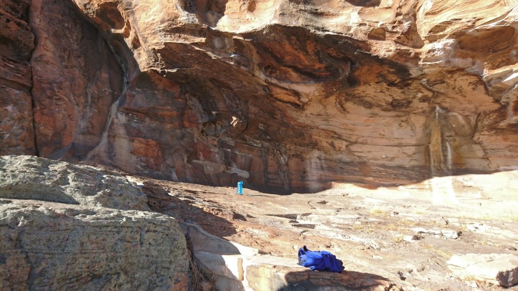 We have always suspected, but never had confirmed, that Parks Victoria has confused the climbing area of Gondwanaland with the cliffline at Yanganaginj Njawi (Camp of the Emus Foot Shelter). Maybe the proximity of the two cliffs (they are about 300m apart – a long uphill 300m slog) means Gondwanaland is automatically offlimits? But Yanganaginj Njawi is not listed as a prohibited area – and it actually does contain caged art – and a few long forgotten trad routes from the 70s!