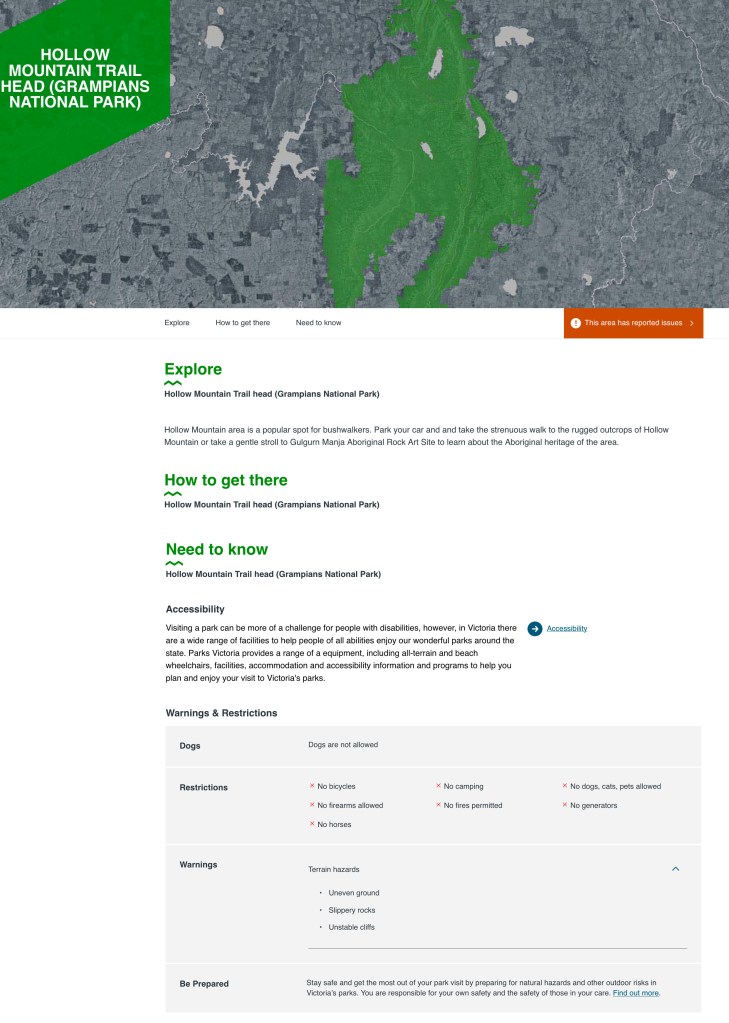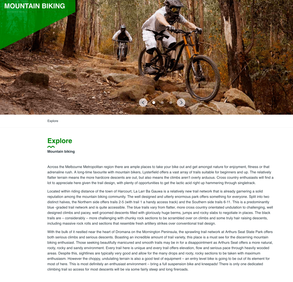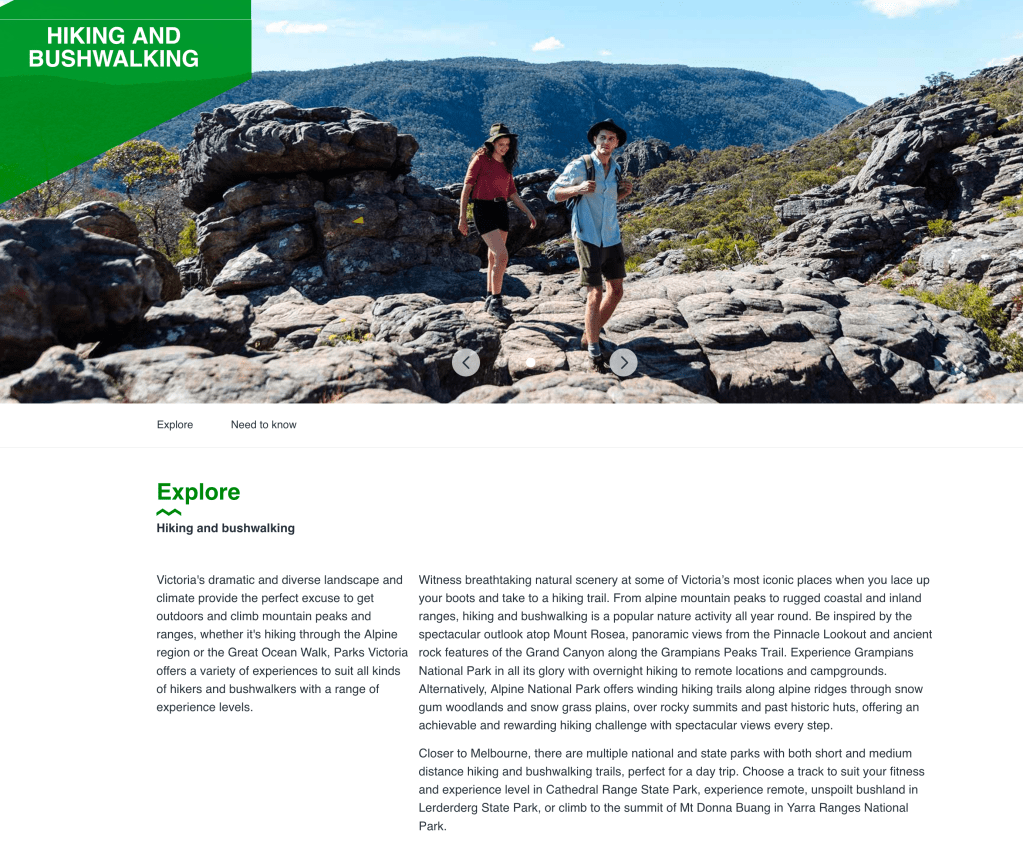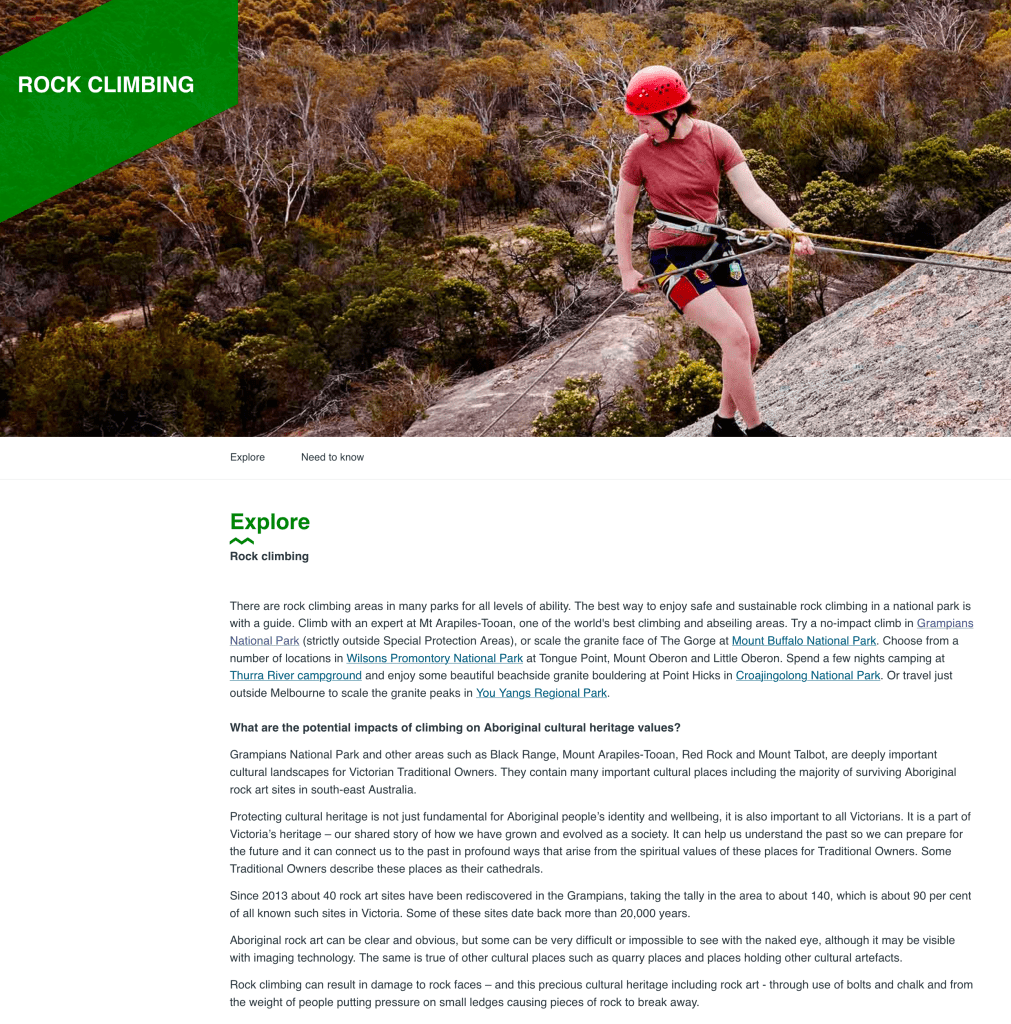 Let’s look at the generic Victoria rock climbing page first, and compare to other pages on Parks Victoria’s website devoted to similar outdoor activates.