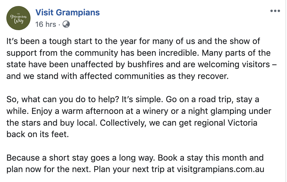 Recent call to action for more visitors from tourist organization Visit Grampians