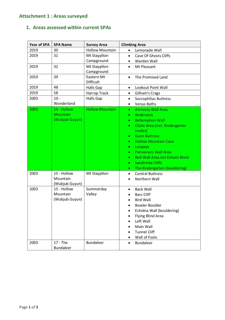 Their own 2003 Grampians Management Plan lists the Hollow Mountain SPA as an “aboriginal site”. This is the very reason why they say they can ban climbing at Hollow Mountain – it’s in the plan!