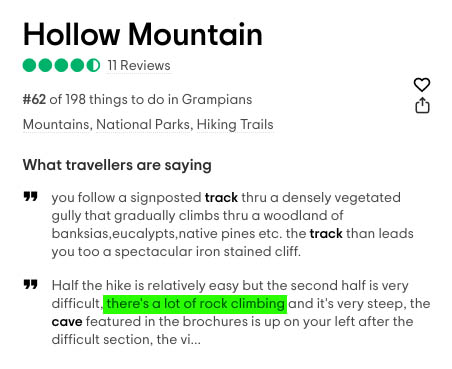You can find official info about the walk up to Hollow Mountain on the website of Parks Victoria, Visit Grampians and even the Victorian State government official tourist website Visit Victoria. #hollowmountain on Instagram features almost 3000 photographs of the area.
