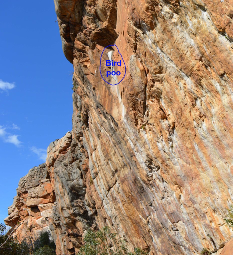 Thus, the majority of the white streaks on the cliff you have mentioned, and elsewhere at Stapylton and on overhung cliffs across the wider Grampians and at araps, are not ‘stains’– they are just streaks of the native white rock colour showing in-between the reds and yellows of the common ‘desert varnish’ that has formed on adjacent, drier parts of the cliff faces. I hope that answers your query. If you have any further questions, please don’t hesitate to get back in touch.